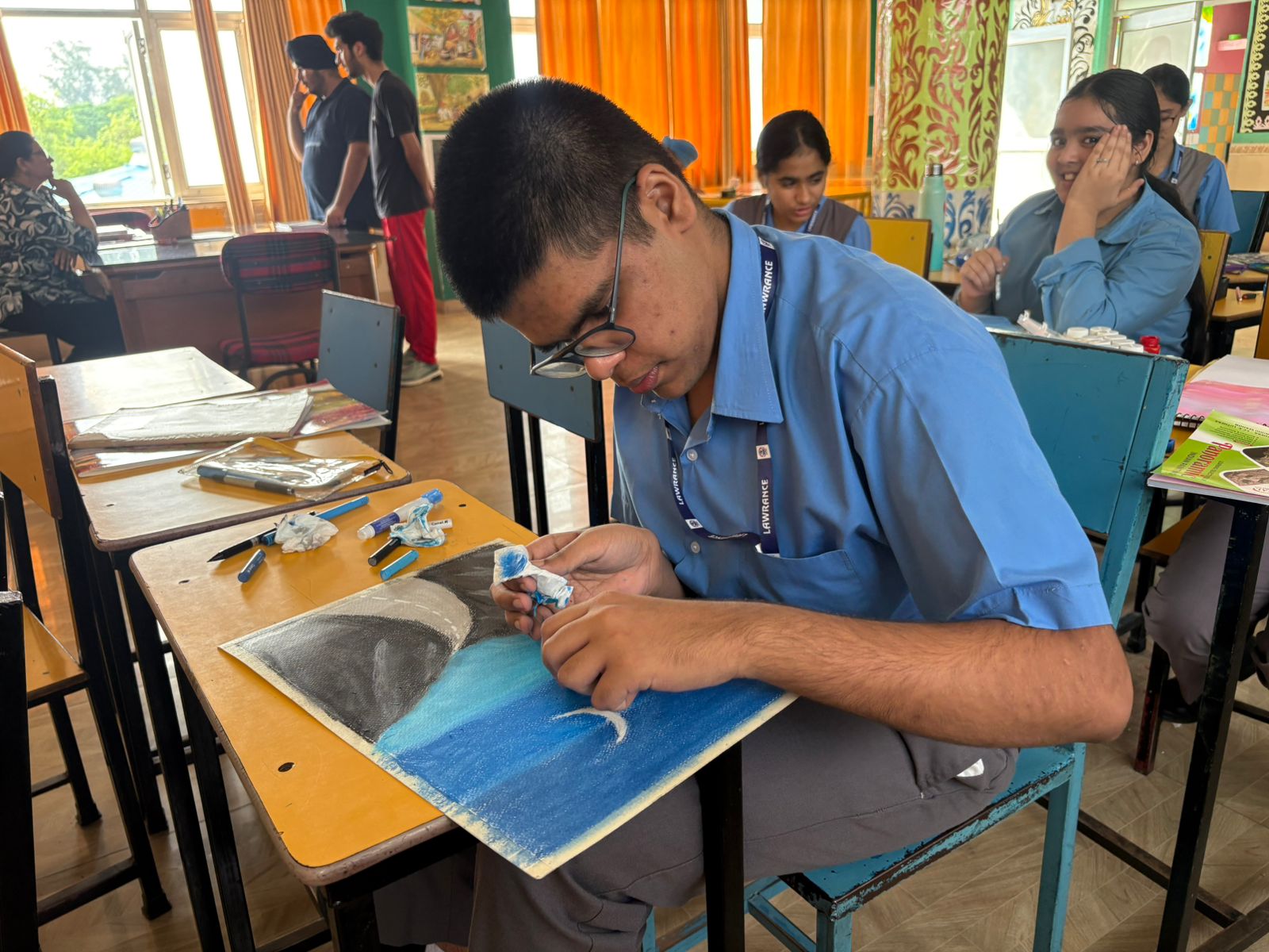 Lawrence Public Senior Secondary School, Mohali, a reputed CBSE school in Mohali, provides a well-equipped Art Room that encourages creativity and artistic expression. Students engage in drawing, painting, and craft activities as part of the academic and co-scholastic curriculum. The art room supports holistic learning and skill development, reflecting the school’s commitment to quality education and making it one of the best CBSE schools in Mohali.
