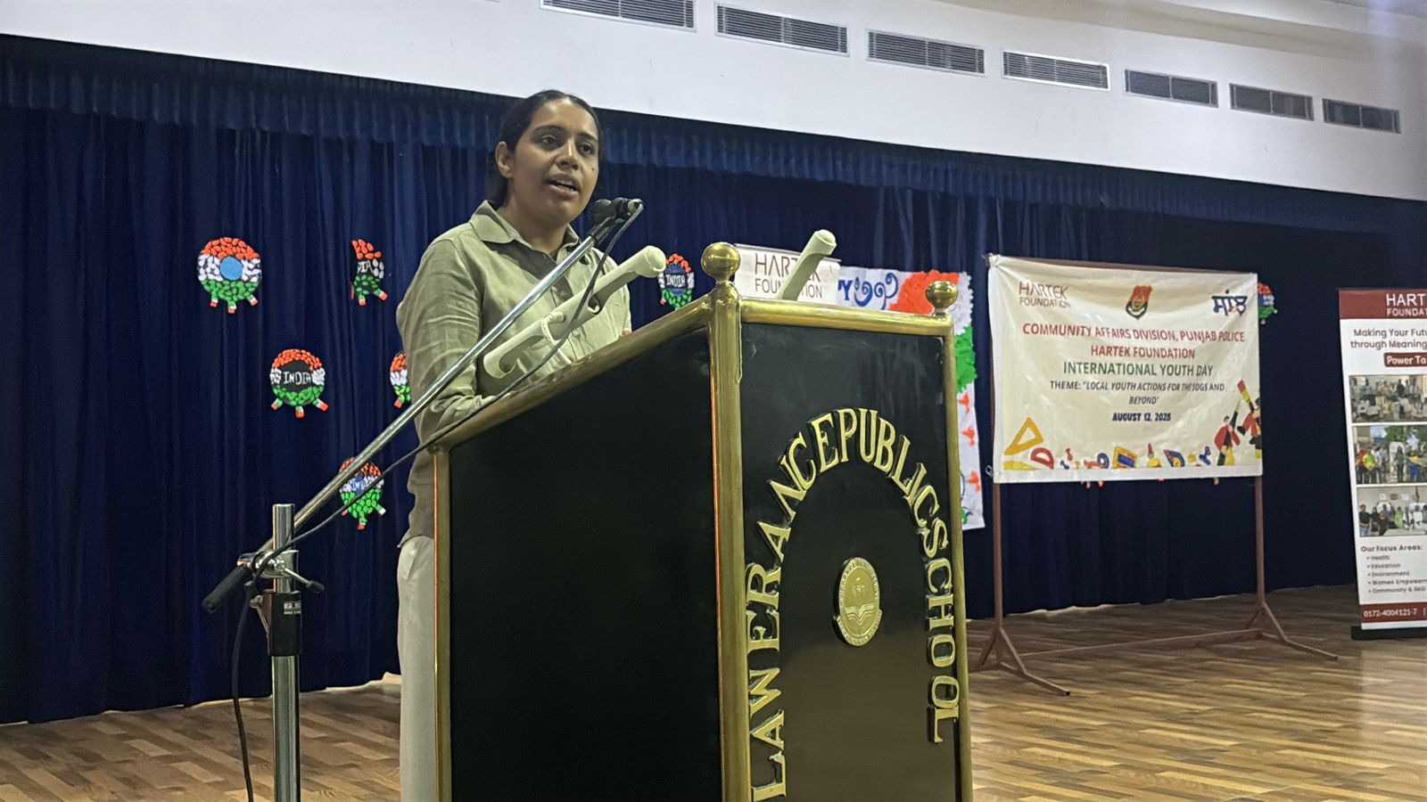Lawrence Public Senior Secondary School, Mohali, a reputed CBSE school in Mohali, proudly hosted the celebration of International Youth Day, organised by the Hartek Foundation in collaboration with the Community Affairs Division of Punjab Police. As part of the celebrations, a painting competition was conducted for students of Classes 8 and 9 on the theme “Innovation with Imagination – From Dreams to Reality.”